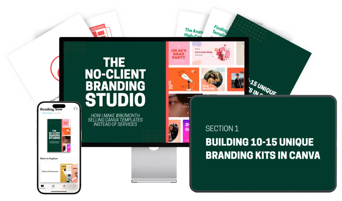 You will get the complete No Client Branding Studio package. Everything comes with clear steps and easy to follow action plan to help you build your shop and reach five to ten thousand dollars a month.